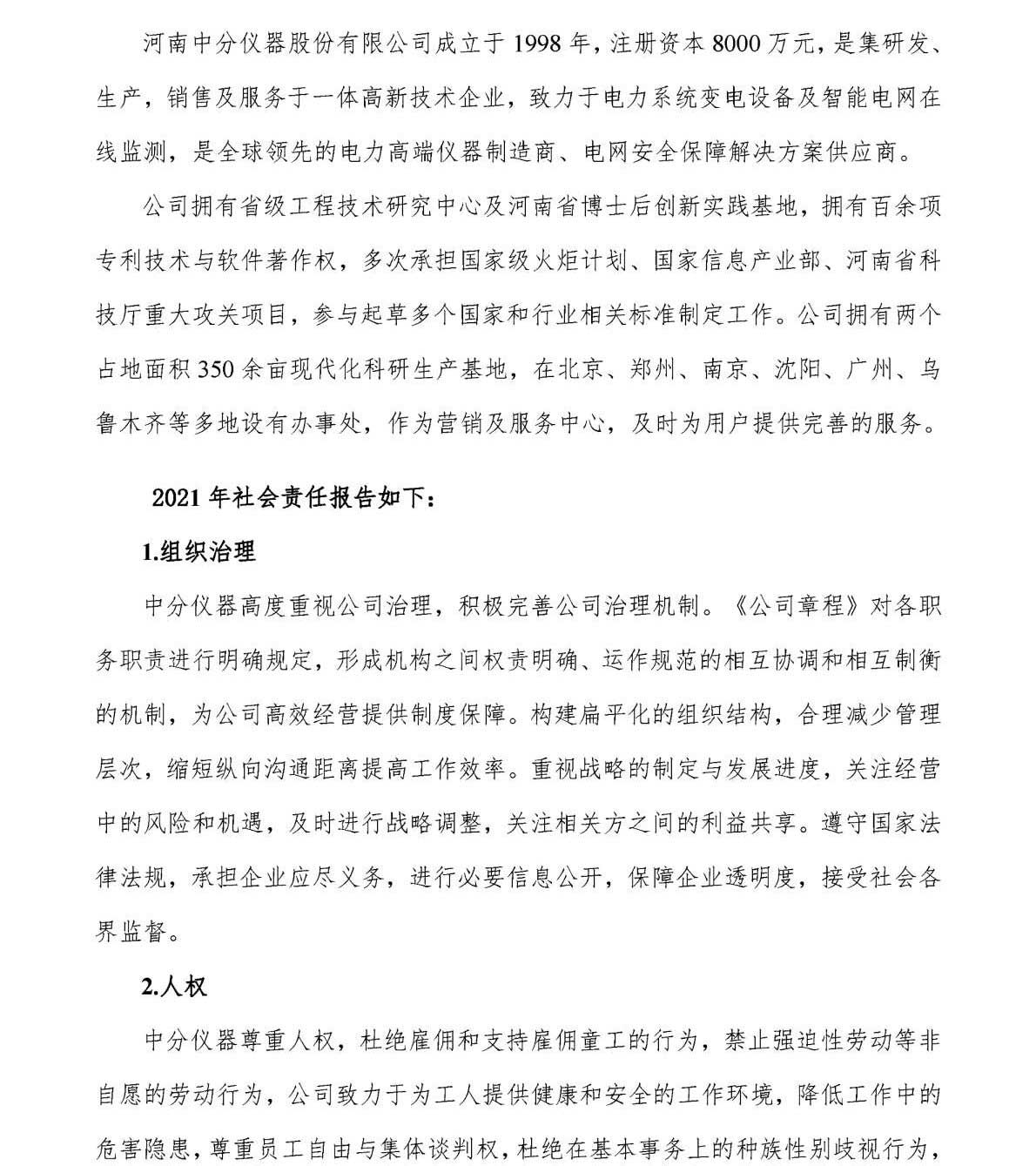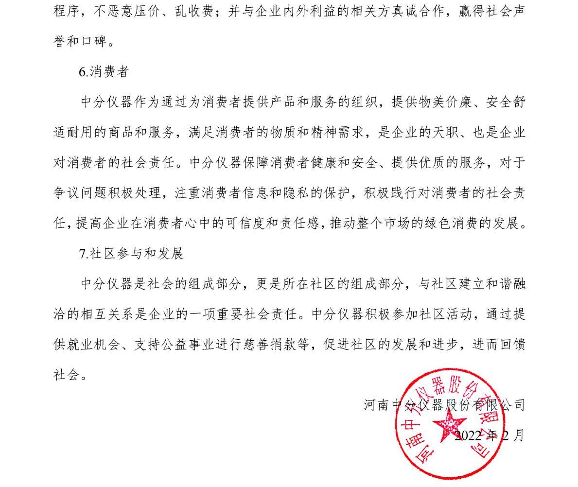 河南中分儀器股份有限公司2021年企業(yè)社會(huì)責(zé)任報(bào)告