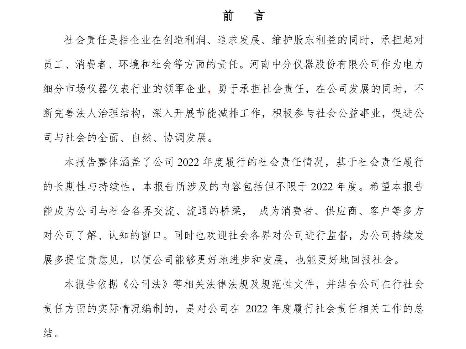 河南中分儀器股份有限公司2022年企業(yè)社會(huì)責(zé)任報(bào)告